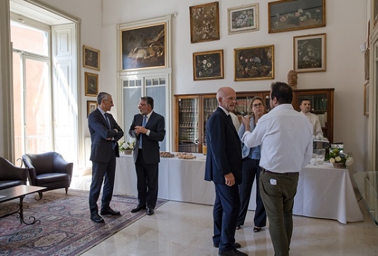 La conferenza stampa è stata introdotta da Mario Breglia, Presidente della SIDIEF, con i saluti di Antonio Cinque (Direttore Sede di Napoli BANCA D’ITALIA) e di Alessandra Clemente (Assessore ai giovani e alle politiche giovanili del COMUNE DI NAPOLI). Hanno illustrato i lavori di restauro Franco Martinelli (Direttore Area Tecnica della SIDIEF), Stefano Cerea (Progettista e Direttore dei lavori) e Luigi Soligo (Restauratore, GERSO restauro opere d’arte). Carola Giuseppetti, Consigliere e Direttore Generale della Sidief, ha introdotto gli interventi di Federica Brancaccio (Presidente ACEN) e Fabio Mangone (Vicedirettore del Dipartimento di architettura dell’Università degli Studi di Napoli FEDERICO II) e concluso i lavori.